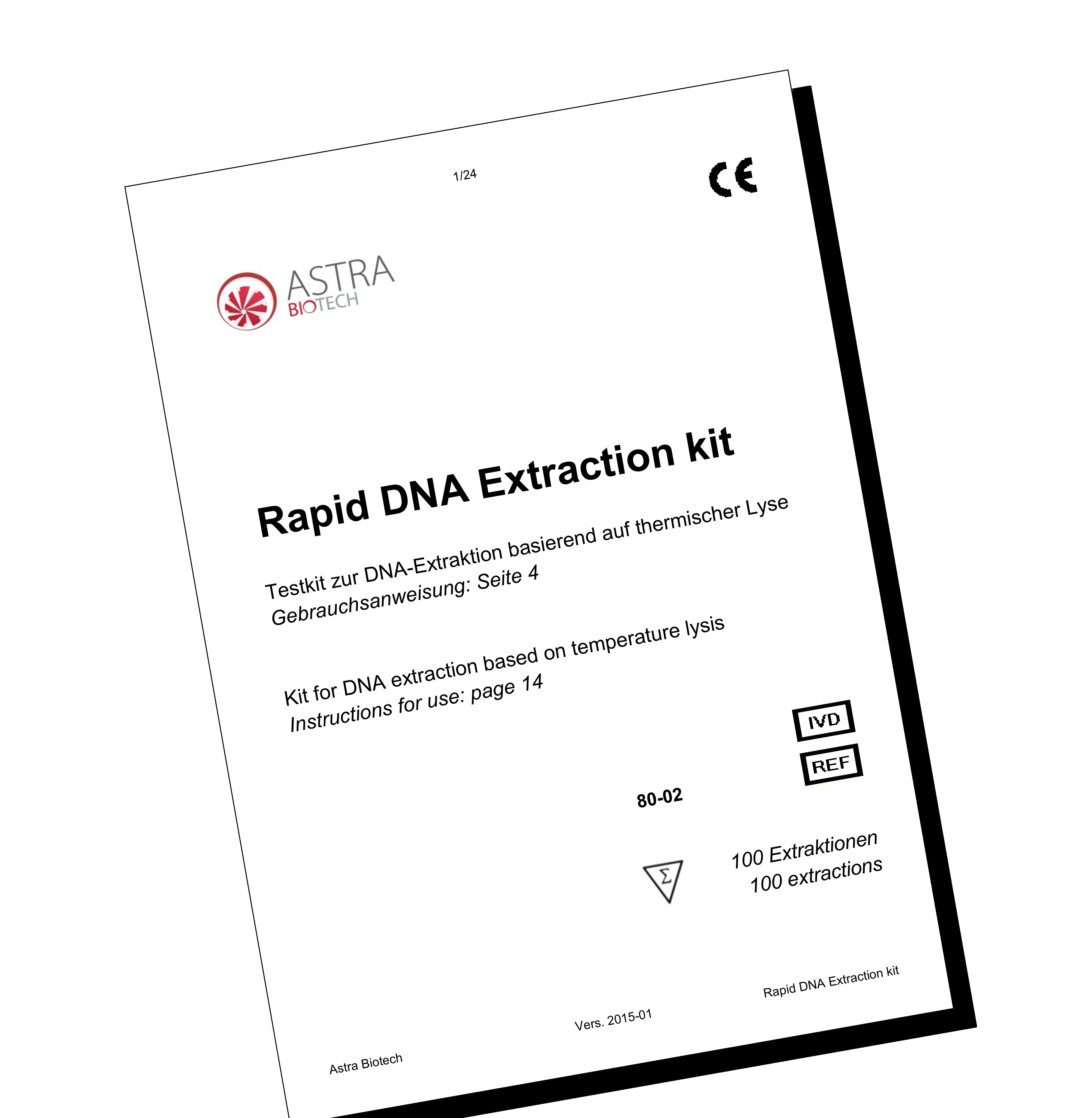Ein neuer Kit für superschnelle DNA-Extraktion erweitert das Angebot Astra Biotechs molekularbiologischer Kits. Der neue Rapid DNA Extraction kit erlaubt eine superschnelle, nutzerfreundliche und hoch effektive DNA Extraktion. Die DNA-Isolierung beruht auf der neuartigen Kombination von thermischer Lyse und dem Einsatz von Co-Präzipitatoren. Dadurch können Verunreinigungen und Inhibitoren folgender Anwendungen effizient abgetrennt werden. Die gewonnene DNA ist so für vielfältige Anwendungen einsetzbar - einschließlich Real-time PCR.