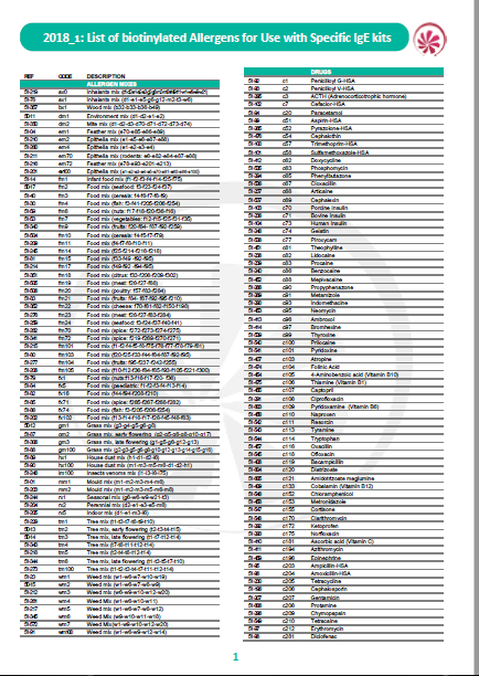 Die biotinylierten Allergene sind mit dem Specific IgE ELISA Testkit zu verwenden und ermöglichen eine verlässliche, sensitive und patienten-spezifische Diagnostik.